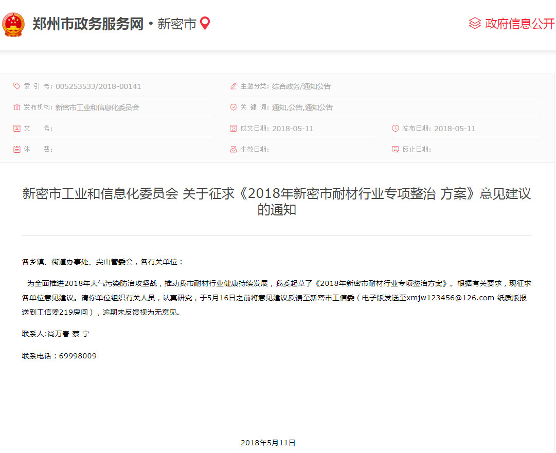 近年來,新密市按照生態文明建設的總要求高度重視耐材產業綠色發展,通過政策支持,強力推動耐材行業聯合重組、淘汰產能、清潔生產,完成耐材企業“清潔轉身”,實現耐材行業綠色可持續發展。綠色轉型升級促進了耐材行業的快速健康發展,今年上半年,耐材產量、產值、稅收各項指標快速增長,對全市經濟發展起到了有力支撐。國家生態環境部大氣環境管理司副司長李培對新密的耐材行業技改提升及環境污染整治效果給予肯定。